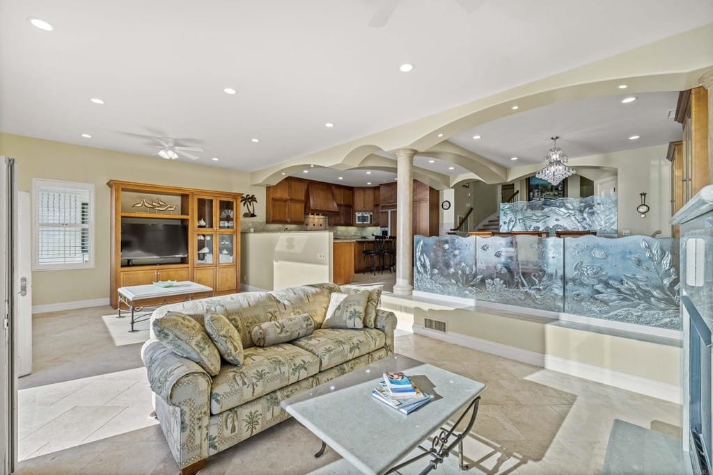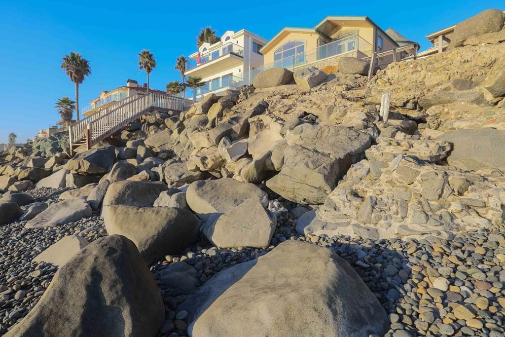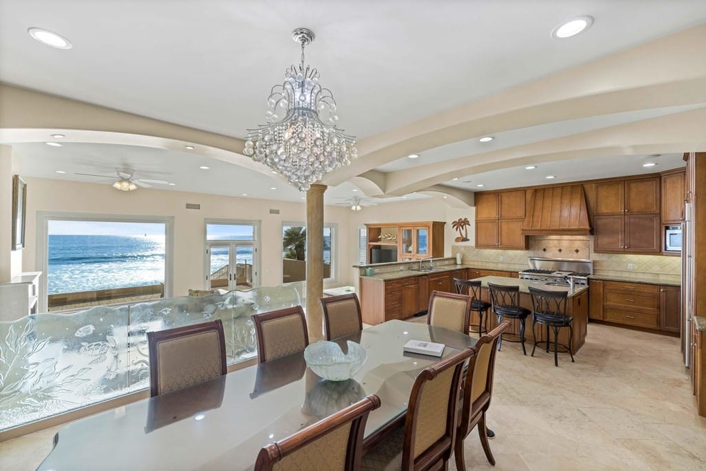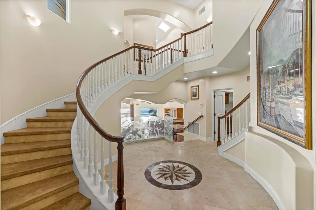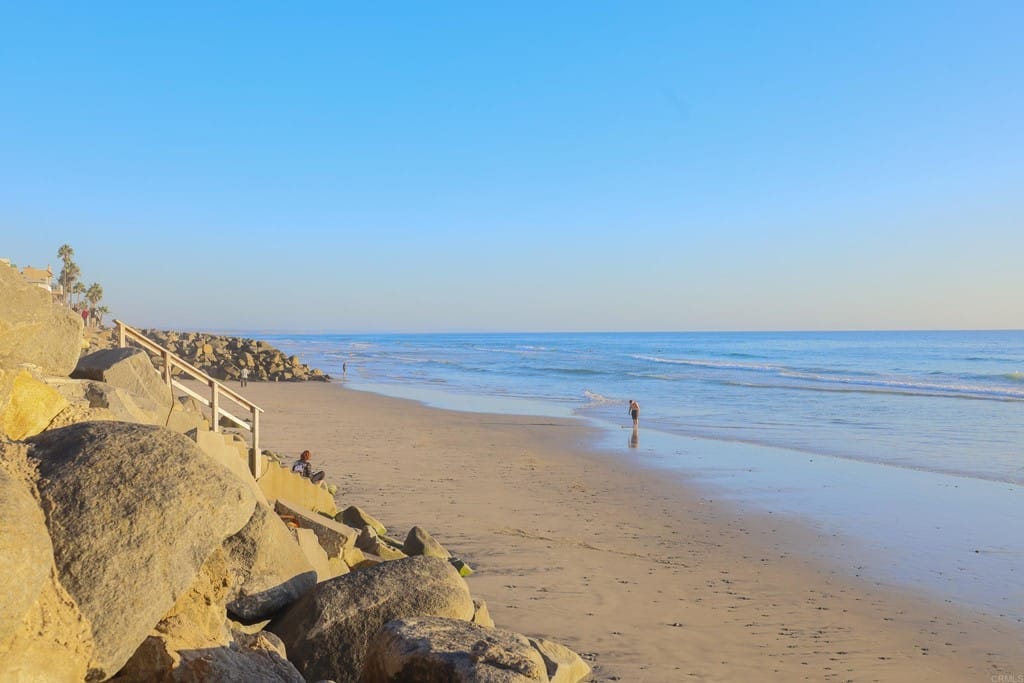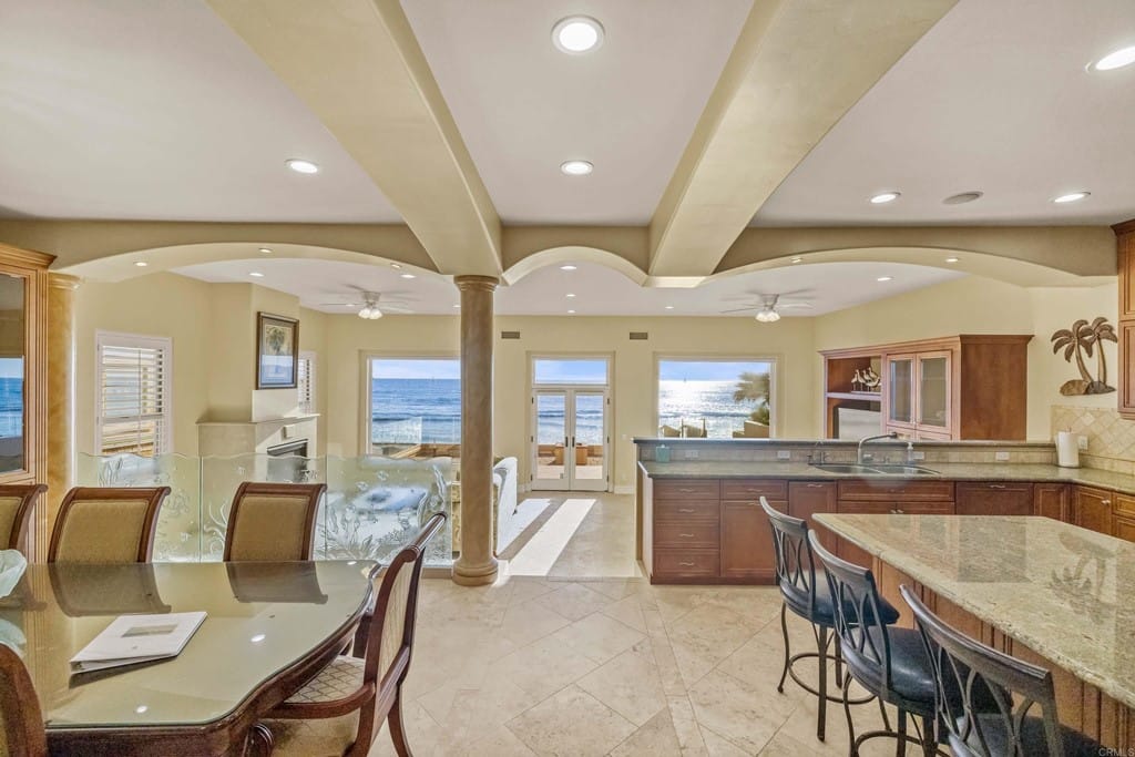 OWNER WILL CARRY FIRST LOAN …Custom-built beach home located steps away from the shore with stunning white water panoramic views and a beautiful deck including a private staircase leading down to the sand. The grandfathered in stairs are a unique opportunity as this is one of the few homes on the coast with one, and newer properties along the coast seldomly can get approval to build them. The entry greets you with a classical chandelier hanging two stories high with custom down-lighting and a massive grand entryway. The chef’s kitchen is complete with stainless steel appliances range oven, and insane ocean blue views of the horizon from every angle. The living room features a wood-burning gas fireplace and seashell inserts within the granite. The french doors open out to the extra-large patio that is perfect for watching the sunset, entertaining guests, and even walking down to the beach! The Master bedroom and second master bedroom share a balcony with views that gaze over to the harbor and go as far as La Jolla shores. The lower level features a large game/media room with private access and a side door to the backyard. Join us next weekend for an exclusive sunset showing experience. DO NOT miss your chance at this custom-built coastal rock dream home steps away from the shore.